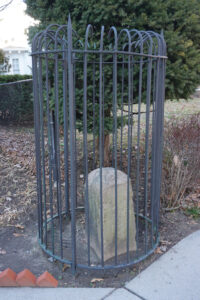 This sandstone boulder half hidden across from Community Printing on Maple Avenue is the oldest landmark in Takoma Park. Set in place at the behest of President George Washington in 1792, it is one of 40 boundary markers carving out a 10-square mile Federal Capital (District of Columbia) from Maryland and Virginia.