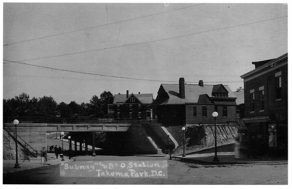 Takoma Park owes its existence to this railroad crossing. It inspired Benjamin Franklin Gilbert to imagine a commuter suburb established in 1883. He quickly changed the station name from “Brightwood” to “Takoma Park.” The station stop sits just inside the District and provides a strong bond between the two halves. Read More