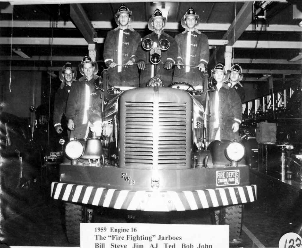The fire station standing today where Philadelphia Avenue and Carroll Avenue meet, is the third station on this site. In late December 1893 a fierce fire destroyed the three major businesses adjacent to the railroad station (in Washington, DC). The Town of Takoma Park established a fire department in 1894 and bought an engine and hose reels. The “log cabin” (corner of Laurel and Westmoreland) served as an initial location for the engine. Later the department worked from the Bliss Electrical School (site of the current Montgomery College), and then, in 1922, moved into a new building at the corner of Eastern and Laurel (“Pizza Movers”).