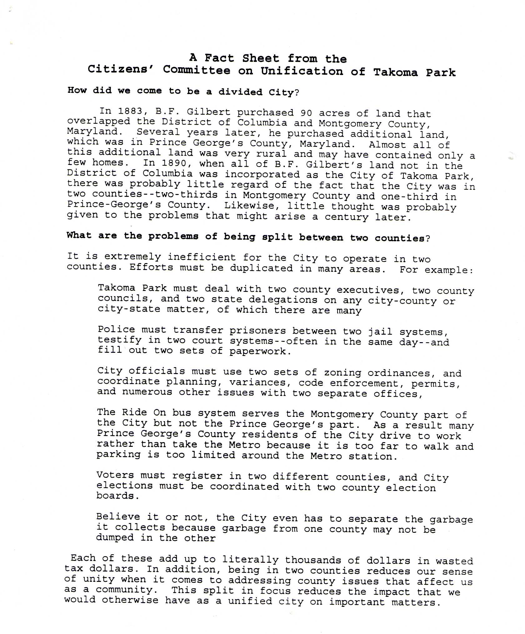 A more detailed version, Countdown to Unification, was published in the July 1997 Takoma Park City Newsletter.